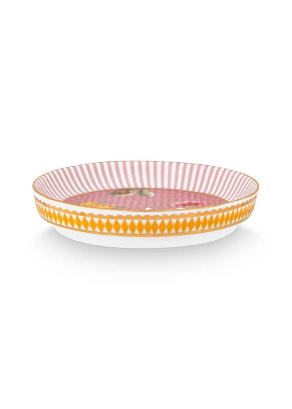 | La Majorelle -kokoelmallaan Pip kunnioittaa kauniita kasvitieteellisiä puutarhoja, joissa on laaja kirjo värikkäitä kukkia ja oksia ympäri maailmaa. Se on eloisa kukkien esittely, jossa leikitellään palmupuiden ja majesteettisten haikaroiden kanssa. Taustalla olevat pisteet ja raidat antavat tälle suunnittelulle yllättävän yhdistelmän ja modernin käänteen. La Majorelle -astiastokokoelma on saatavilla kauniissa vaaleanpunaisessa ja upeassa keltaisessa sävyssä ja sisältää myös lasitavaroita sadunomaisella kultaisella maisemalla. |