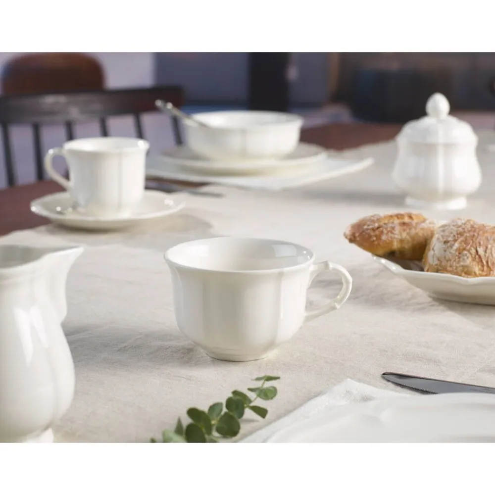 | Kätevän muotonsa ansiosta kuppi sopii myös pitopalvelukäyttöön ja täydentää kauniisti Manoir-astiaston. |