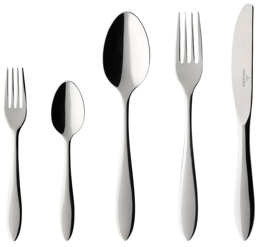 | Yhden myyntipakkauksen sisältö:6 kpl lusikkaa, 6 kpl haarukkaa, 6 kpl veistä, 6 kpl kahvilusikkaa, 6 kpl leivoshaarukkaa |