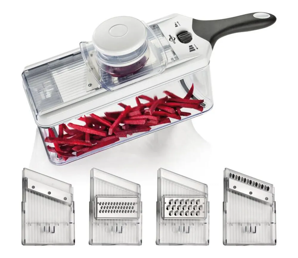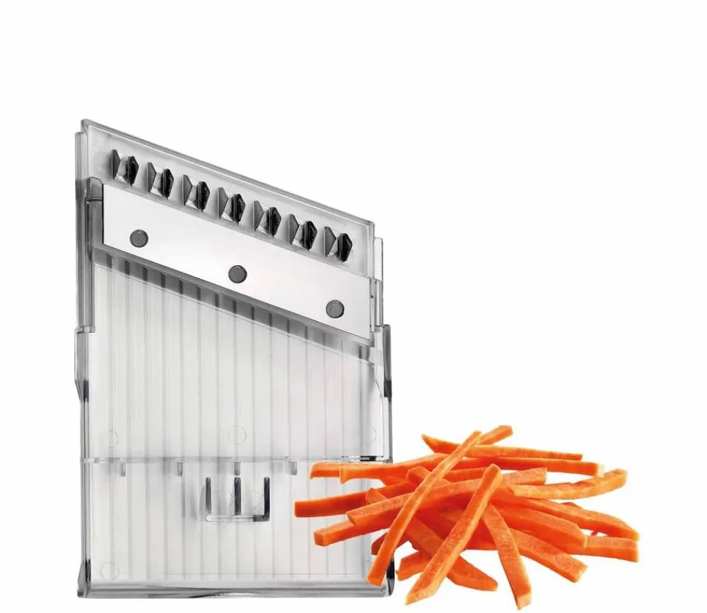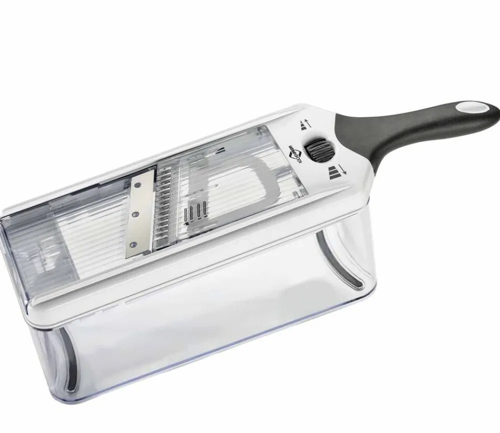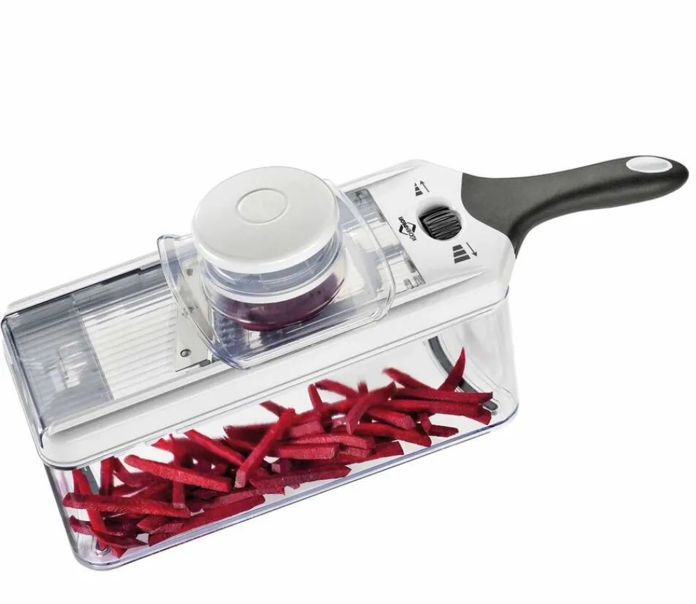 | Hoito-ohjeet:Terät eivät ole konepestäviä. Mandoliinin muut osat ovat konepestäviä, max. 65 asteessa. Suosittelemme kaikkien osien puhdistamista käsin kuumalla vedellä ja miedolla saippualla. Pesun jälkeen kuivaa tuote huolellisesti. |