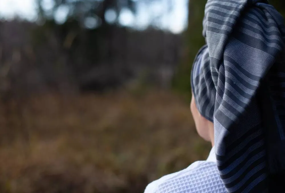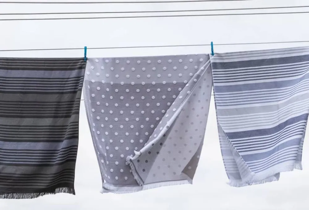 | Pyyhkeen toinen puoli on sileä ja toisella puolella on froteepinta |