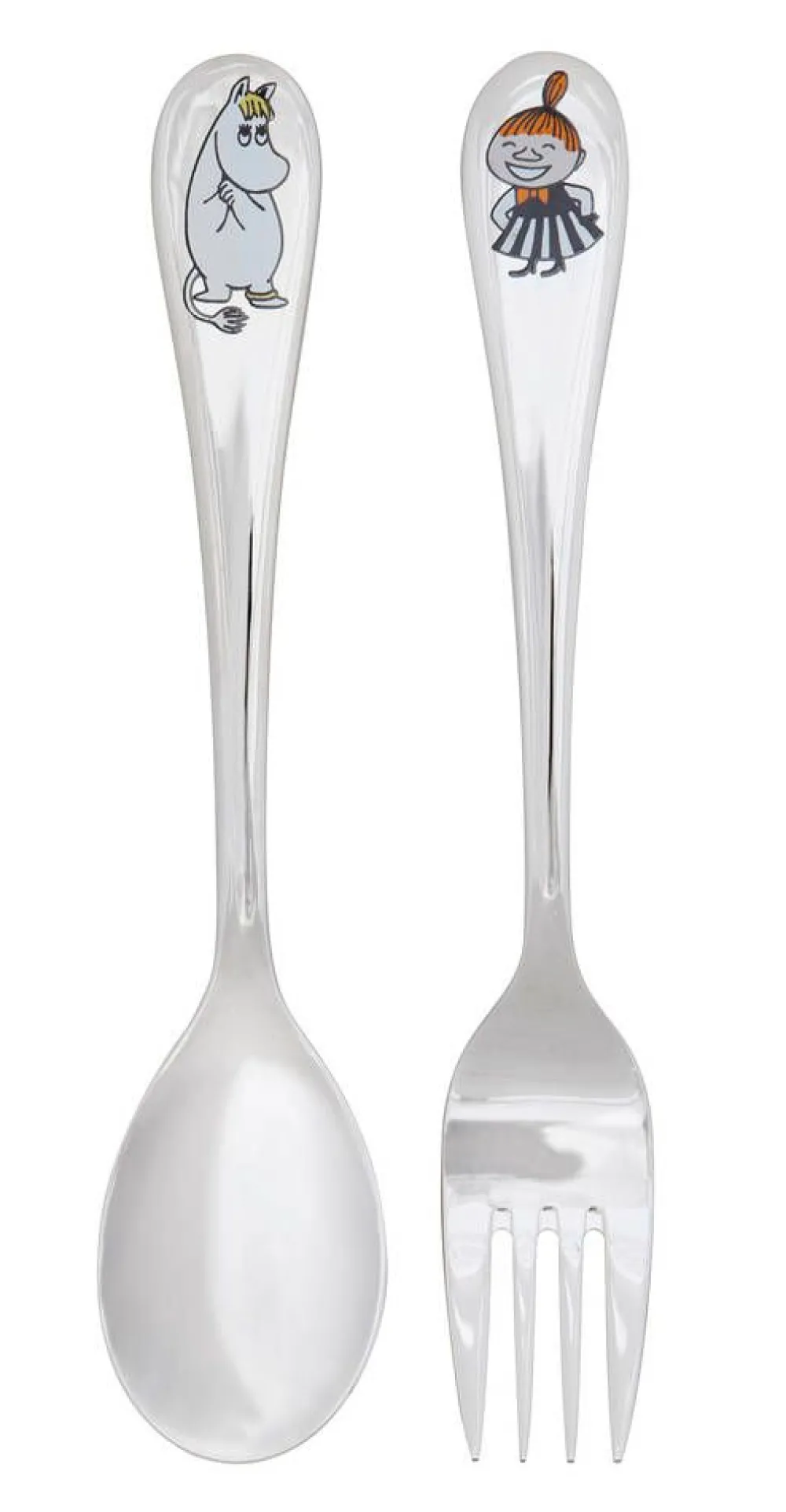 Ensilusikka ja -haarukka lapselle. Aterimien kuvituksissa Niiskuneiti ja Pikku Myy. Ruostumatonta terästä.Muumit, byArabia Ensisetti Niiskuneiti ja Pikku Myy lusikka ja haarukka.