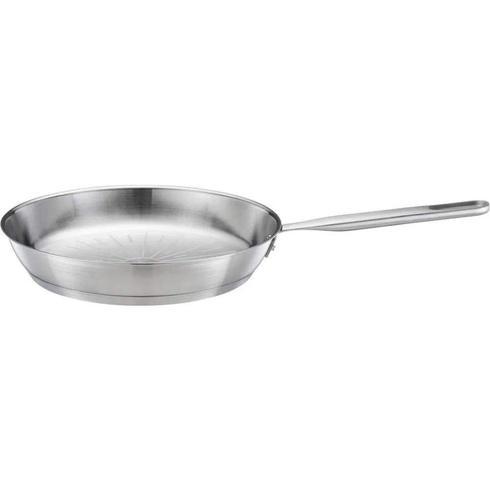 | Ominaisuudet: Käytännöllinen All Steel pure -paistinpannu kestävistä laatumateriaaleista – Valmistettu pinnoittamattomasta, ruostumattomasta teräksestä pitkäkestoisen suorituskyvyn takaamiseksi – Alumiiniydin kuumenee nopeasti ja tasaisesti – Ergonominen, ruostumattomasta teräksestä valmistettu kahva on turvallinen ja uuninkestävä – Valmistettu 90-prosenttisesti kierrätetystä teräksestä |