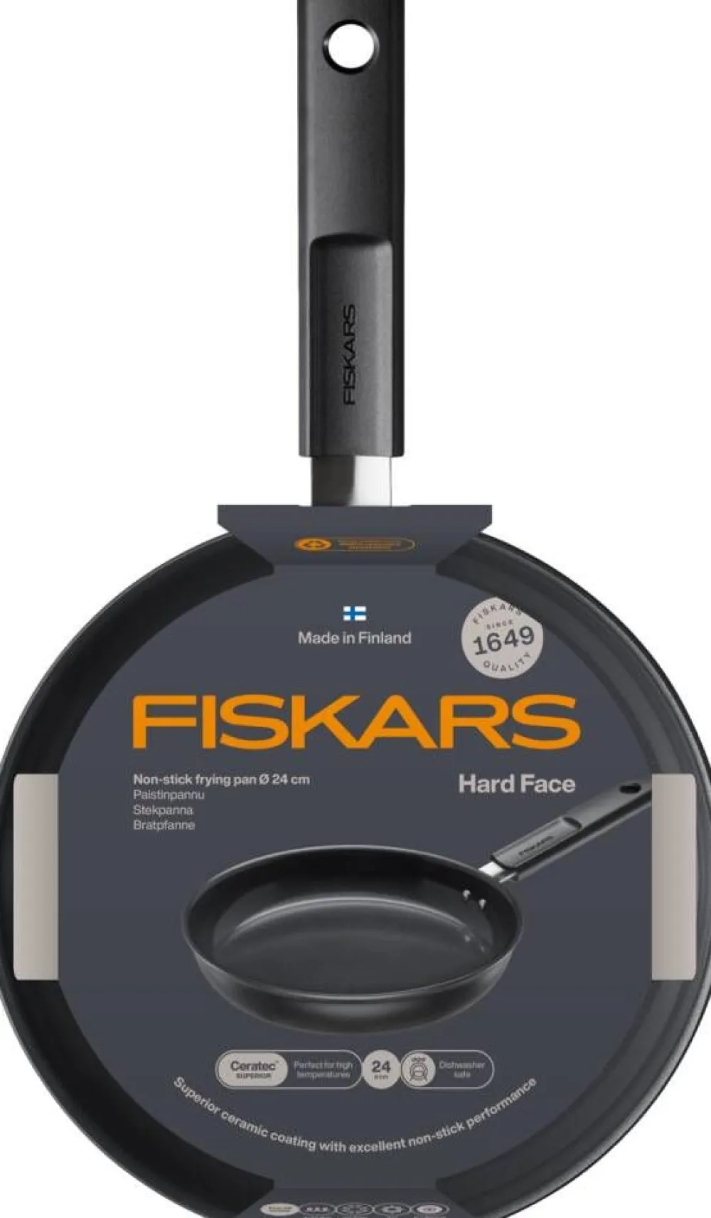 | Suomessa valmistettu Fiskars Hard Face 24 cm -paistinpannu muovittomalla ja tarttumattomalla pinnoitteella täyttää vaativankin kotikokin vaatimukset. |