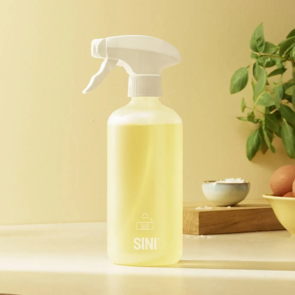 Täydellisesti keittiön pinnoille sopiva sitruunainen puhdistusaine neutralisoi ruuanlaiton hajut, poistaa rasvan ja puhdistaa liat tehokkaasti. Täytä kaunis kestopullo vedellä, tiputa tabletti pulloon ja saat pullollisen puhdistusainetta. Pakkaus sisältää 2 pullollista puhdistusainetta. Suihkauta puhdistettavalle pinnalle n. 20-30 cm:n etäisyydeltä ja pyyhi kostealla liinalla tai sienellä. Ihanan tuoksuinen puhdistusaine ja kaunis kestopullo.