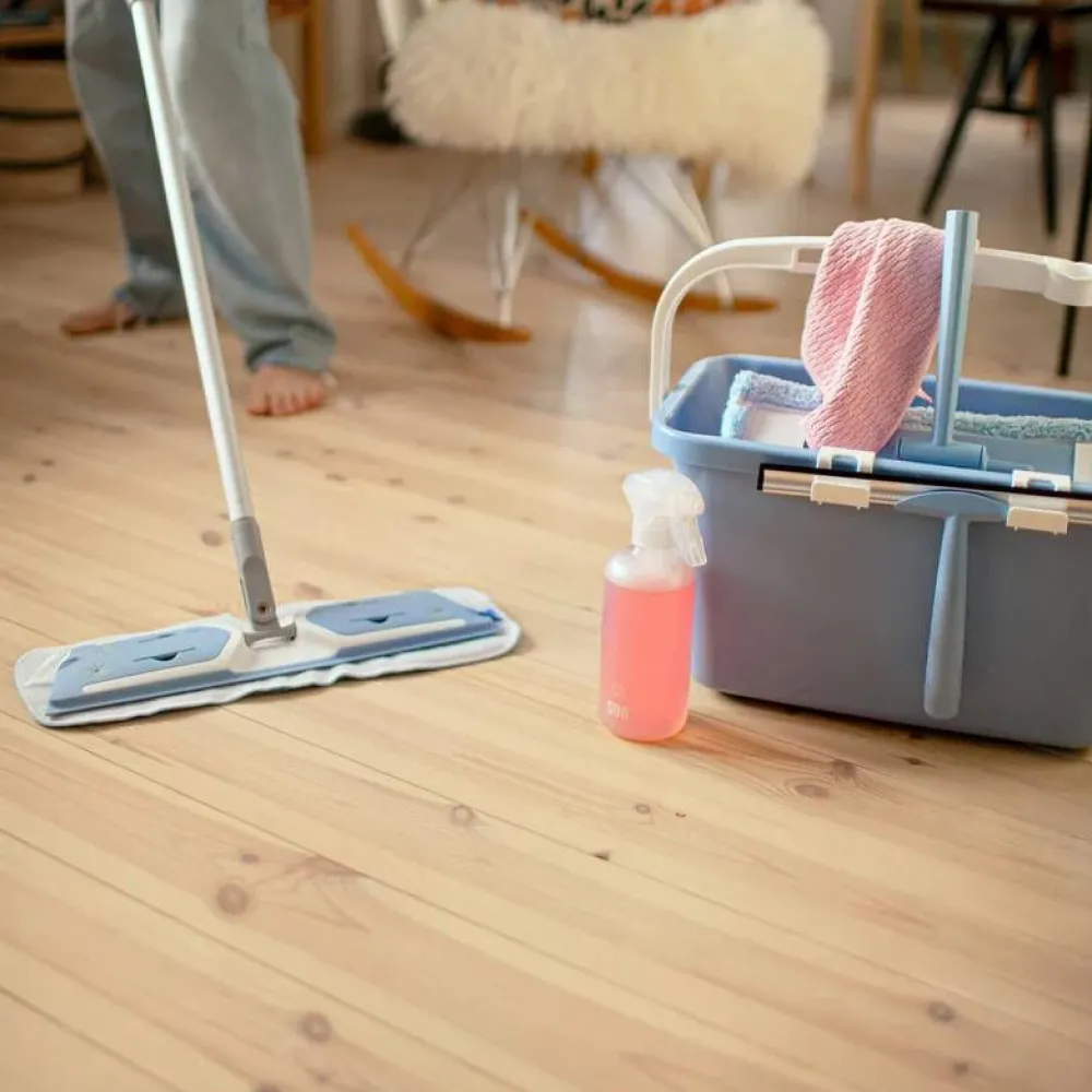 | Käyttöohje: Kiinnitä hankaava mikrokuitumoppi monitoimimopin pohjassa oleviin tarroihin. |