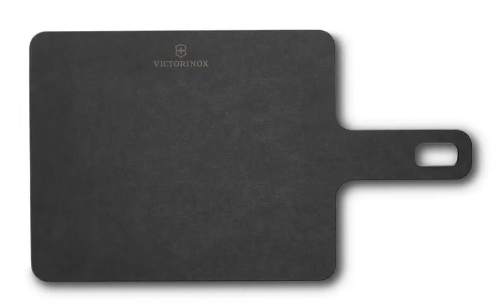 Victorinoxin Handy-leikkuulauta on valmistettu astianpesukoneen kestävästä, ympäristöystävällisestä paperikomposiittimateriaalista, joka luontaisen kimmoisuutensa (””natural bounce””) ansiosta on erittäin hellä veitsen terälle. Leikkuulauta kestää 175 °C:n kuumuuden, joten sitä voi käyttää myös pannunalusena. Käytännöllinen kahva helpottaa paitsi tarjoilua myös pilkottujen raaka-aineiden siirtämistä pannulle. Kahvan ripustusreiästä leikkuulauta on kätevä ripustaa roikkumaan. Materiaali koostuu paperiarkeista, jotka prässätään yhteen tasaisen lämmön ja paineen avulla. Lopputuloksena on vankka, tasapainoinen ja kestävä materiaali. Tuotteet valmistetaan Epicureanin tehtaalla Wisconsinissa USA:ssa. Kaikki tuotantoprosessin aikana syntyvä jäte ja ylijäämämateriaali pyritään minimoimaan, käyttämään uudelleen tai kierrättämään aina kun mahdollista. Myös lämpö otetaan talteen ja käytetään varastotilojen lämmittämiseen talvella. Materiaalilla on mm. GREENGUARD- ja FSC® -sertifikaatit.