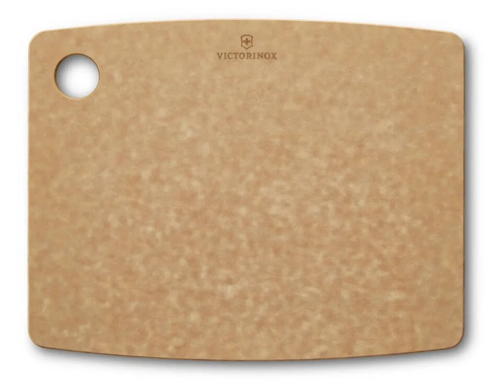 Victorinoxin Kitchen-leikkuulauta on valmistettu astianpesukoneen kestävästä, ympäristöystävällisestä paperikomposiittimateriaalista, joka luontaisen kimmoisuutensa (””natural bounce””) ansiosta on erittäin hellä veitsen terälle. Leikkuulauta kestää 175 °C:n kuumuuden, joten sitä voi käyttää myös pannunalusena. Ripustusreiästä leikkuulauta on kätevä ripustaa roikkumaan. Materiaali koostuu paperiarkeista, jotka prässätään yhteen tasaisen lämmön ja paineen avulla. Lopputuloksena on vankka, tasapainoinen ja kestävä materiaali. Tuotteet valmistetaan Epicureanin tehtaalla Wisconsinissa USA:ssa. Kaikki tuotantoprosessin aikana syntyvä jäte ja ylijäämämateriaali pyritään minimoimaan, käyttämään uudelleen tai kierrättämään aina kun mahdollista. Myös lämpö otetaan talteen ja käytetään varastotilojen lämmittämiseen talvella. Materiaalilla on mm. GREENGUARD- ja FSC® -sertifikaatit.